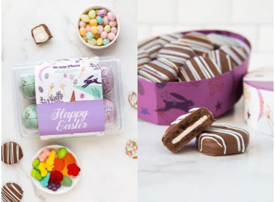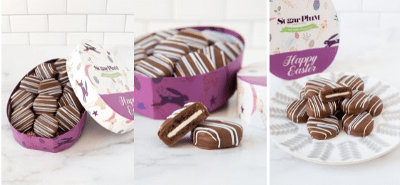 Easter Milk Chocolate-Covered Sandwich Cookies Assortment – Featuring 12 world-class chocolate-dunked sandwich cookies all dressed up in the bright and festive Sunday best and presented in an adorable Easter egg container, Sugar Plum’s Easter Milk Chocolate-Covered Sandwich Cookies Assortment is a perfect treat for every family’s resident chocoholics! Retails: $24.95.