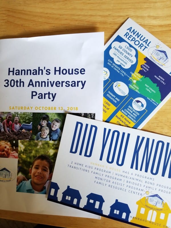 Hannah’s House has served parents and children in the midst of family breakup for 30 years – since 1988. With 6 programs and 40 services, this amazing nonprofit organization serves over 1500 families each year relying primarily on donations and volunteers from all the communities of San Diego county.