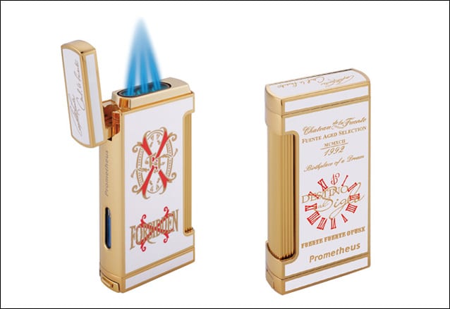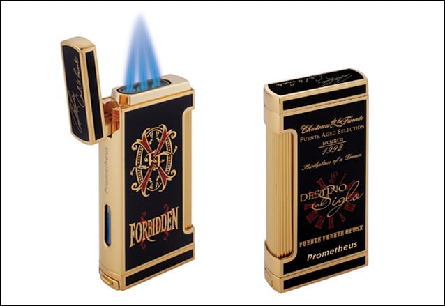 New Product Highlights – Fall 2014PROMETHEUS 2014 marks the 10th Anniversary of the God of Fire brand. In celebration, Prometheus is releasing the limited edition anniversary humidors, lighter and cutter. In addition, Prometheus will introduce the Platinum Series 150-cigar and Milano Series 100-cigar humidors, and relaunch its Cutter D. As a part of its limited edition collection, Prometheus will release the Fuente Fuente Forbidden X, humidors and lighters and cutters.GOD OF FIRE In celebration of its 10th anniversary, God of Fire is releasing the Serie Aniversario which consists of 3 figurado sizes. In addition, God of Fire will ship the 11-cigar anniversary assortment boxes which come with all 11 God of Fire sizes.SENCILLO This fall, we are continuing the shipment of Sencillo Black Piramide 60 (60 x 5 1/2), which is packaged in box of 10 cigars. Sencillo Black is made in Esteli, Nicaragua.FUENTE AGED SELECTION The 2014 release of Opus22 and Opus6 will be shipped to the authorized Fuente Aged Selection dealers in November 2014. Thanks to your generous support, Prometheus and God of Fire have been able to donate over $1 million to Cigar Family Charitable Foundation (www.cf-cf.org) from the sales proceeds of Opus22 and Opus6 since their inception in 2004. For the 2014 limited edition collection, the Fuente Fuente Forbidden X humidors, lighters and cutters will be released. |
